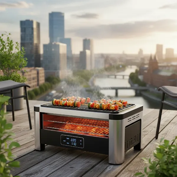 - User-Friendly and Safe: Simply plug it in, adjust the temperature, and start grilling. The lack of charcoal or propane tanks eliminates concerns about fuel storage or open flames, making it ideal for restricted spaces like apartment balconies and small patios.
